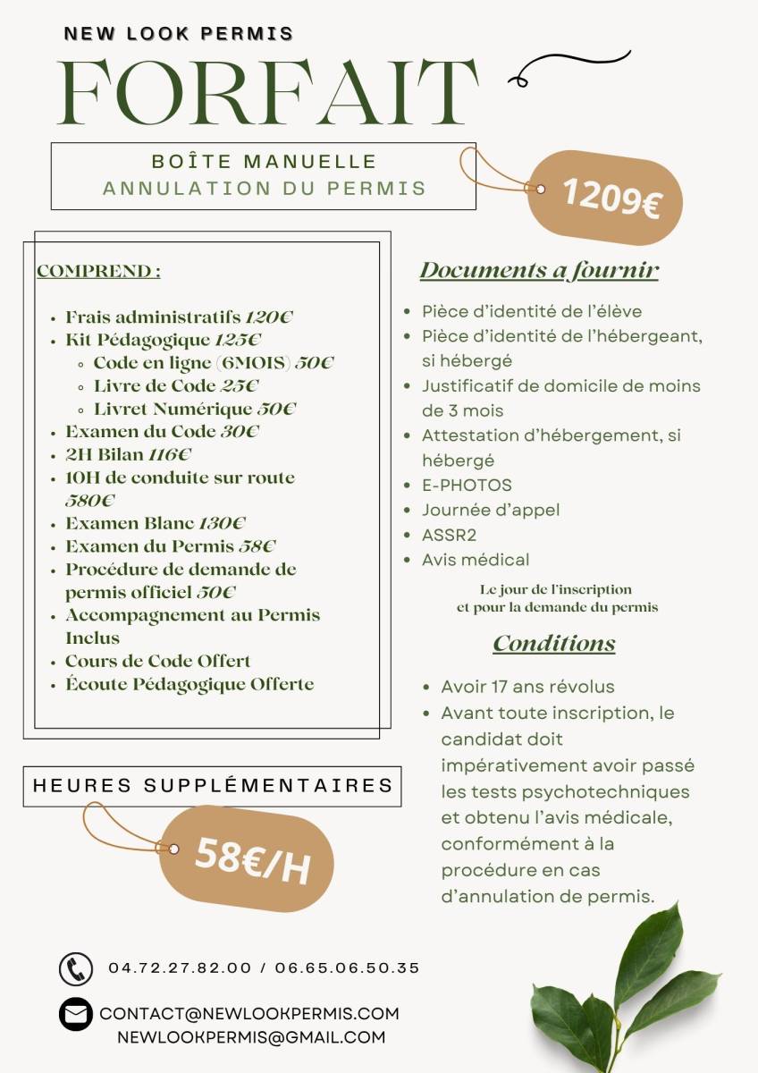 New Look Permis propose un forfait adapté aux besoins des conducteurs en reprise de permis, avec un accompagnement personnalisé.